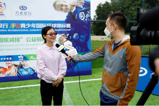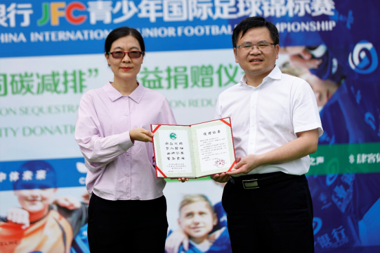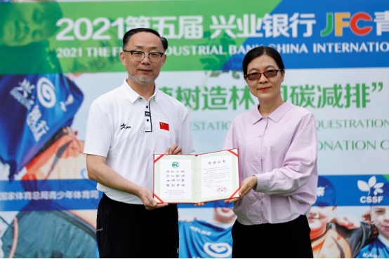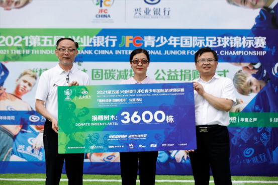 8月18日,2021第五届兴业银行JFC青少年国际足球锦标赛“植树造林 固碳减排”公益捐赠仪式在北京东枫体育园举行,宣布以参与本届赛事的每一位青少年球员的名义捐助一颗枸杞树,通过公益赛事的辐射力和影响力,倡导广大青少年、社会公众树立践行绿色低碳的公益理念。