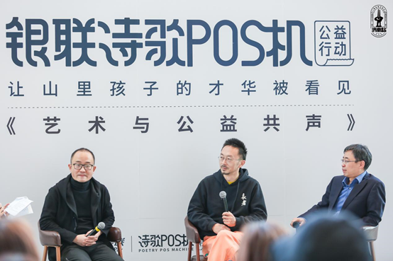 中国银联诗歌POS机公益行动,让山里的才华被看见,旨在让更多的儿童受到社会的关注。邀请到了特别嘉宾,知名跨媒体艺术家:南门书法创始人、立体的墨创始人——朱敬一老师、知名艺术策展人—苏冰老师,在世界儿童日为孩子们发声、为公益发声。