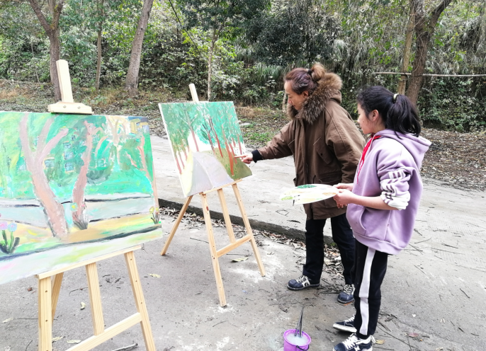 “苗朵向阳开”公益艺术展由华侨城北方集团独家支持,北京悦美术馆、DO Studio、张春旸艺术工作室、寨头苗寨小学康佳春旸成长美术馆、贵州三穗寨头村小学等联合举办。著名艺术家、中国女性表现主义绘画领军人物张春暘亲临三穗实地指导孩子们创作,贵州三穗县教科局组织数位资深美术教师及在地艺术家予以大力支持。通过讲解塞尚等大师作品、校园对景写生等多种方式,孩子们用心、用眼、用手中的画笔,精彩呈现出苗寨的新景观、新生活。